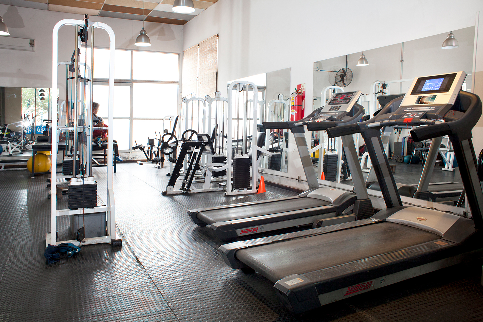 Máquinas específicas para rehabilitación y musculación. Línea aeróbica (cintas, elípticos, bicicletas horizontales, otras) Línea musculación (mancuernas, pesos, poleas, cuadríceras, camillas, pesas, bancos, etc.).